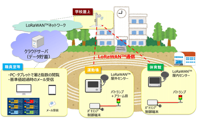 吹田市(市長:後藤 圭二)、西日本電信電話株式会社(代表取締役社長:小林充佳、以下NTT西日本)、株式会社NTTフィールドテクノ(代表取締役社長:坂口 隆冨美)、株式会社フジクラ(取締役社長:伊藤 雅彦)は、LoRaWANTM※1を活用して収集したデータに基づき暑さ指数※2を視える化し、タイムリーな注意喚起を実施する新たな熱中症対策のあり方について、公立学校における実用性を検証するトライアルを実施します。