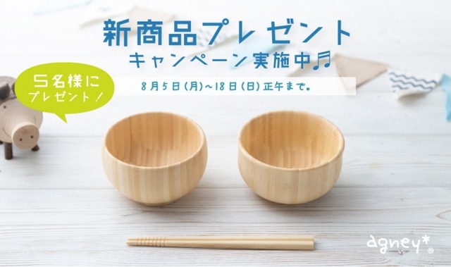 竹や木製品の製造販売を手掛ける仲吉商事株式会社(本社:東京都板橋区)は、オリジナルブランド「agney*(アグニー)https://www.agney.jp」より天然の孟宗竹(もうそうちく)で竹製ベビー・こども食器を作っています。8月末より、有名百貨店をはじめ各通販サイトにて新商品発売を開始いたします。また、発売に先駆け、8月5日(月)~8月18日(日)正午までInstagramにて“新商品プレゼントキャンペーン”を開催。抽選で5名様に新商品をプレゼントいたします。