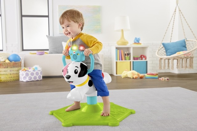 足で地面をけりながら上下にジャンプすることはもちろん、360度回転するため、室内にいながらでもアクティ ブでエキサイティングな運動を促すことができます。歩くことができるようになり、運動欲求が強くなった12カ月ごろのお子さまにぴったりです。