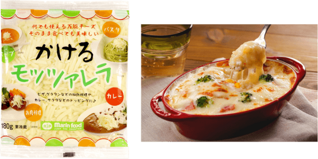 マリンフード株式会社(本社:大阪府豊中市、代表取締役社長:吉村 直樹、以下マリンフード)は、こだわりのモッツァレラチーズを6mm幅にシュレッドした「かけるモッツァレラ 180g」を9月より発売開始いたします。