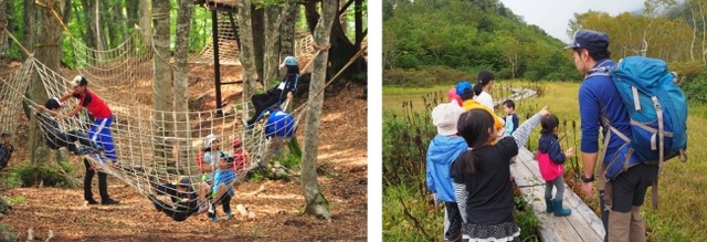 そしてこの度、白馬村内で開始する『旅いくアソベンチャー 冒険キッズマイスターチャレンジ』では、チケットをご購入いただくと3つの地区のゴンドラが3日間乗り放題となり、地上10mでのアスレチックに挑戦できる、白馬つがいけWOW!内「アミダス」や、絶景テラス「HAKUBA MOUNTAIN HARBOR(白馬マウンテンハーバー)」から眺める夕陽「マジックアワー」体験、ブナ林、栂池自然園を子ども目線で楽しむハイキングなど白馬ならではの20種類の遊びを親子で満喫していただけます。白馬の大自然に触れることで子どもの五感を刺激し、好奇心を育て、子どもたちの新しい表情を引き出すプログラムになっています。ぜひかけがえのない思い出作りに親子でいらしてください。