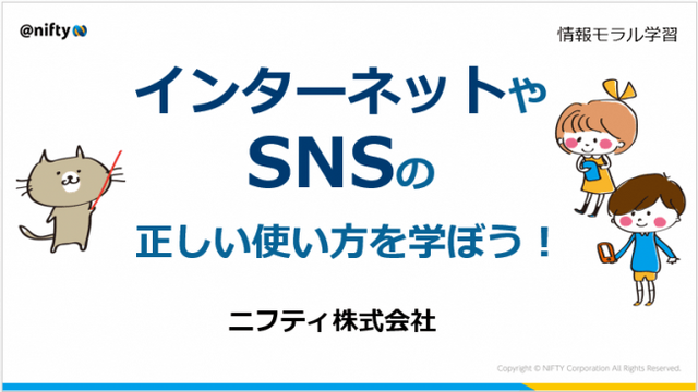 ニフティ株式会社(本社:東京都新宿区、代表取締役社長:野島 亮司、以下当社)は、当社が東京都新宿区の公立小学校を対象に実施している「情報モラル出前授業」で利用している教材を、シナリオ音声付きの動画にし、当社が運営する子ども向けサイト「キッズ@nifty」にて、本日8月13日(火)に公開しました。