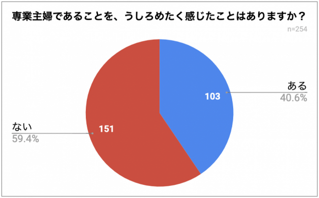 『専業主婦であることで、うしろめたさや罪悪感を感じたことはありますか?』という質問に対し、アンケートに回答した専業主婦(n=254)のうち、40.6%が「ある」と回答。