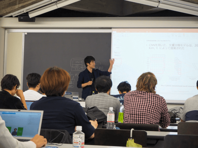当日は早稲田大学の人材育成プログラムにてアントレプレナーシップやデータ関連スキルを学ぶ博士学生・若手研究者を中心とした約20名を対象に、機械学習概論、深層学習入門、CNN入門という 3分野に渡り集中講義を展開しました。普段プログラミングをする人から初心者まで幅広い参加者がいる中、講義、ライブコーデイング、演習を組み合わせたカリキュラムによって、参加者は基本的な知識を学んだのち、実際にコーディングまで実践しました。