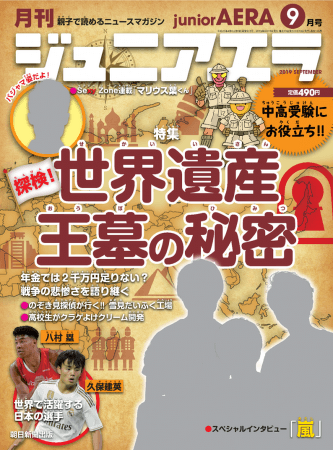 小中学生向けニュース月刊誌「ジュニアエラ」9月号は、8月16日(金)発売です。24時間テレビのメインパーソナリティーを務める『嵐』5人に単独インタビュー。特集は、7月に世界遺産登録が決まったばかりの「百舌鳥・古市古墳群」など、世界遺産の王墓に迫ります。