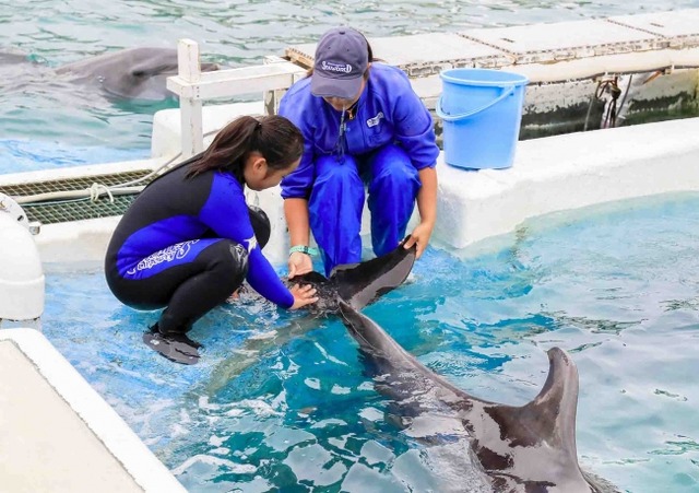 本プログラムでは、イルカの生態や特徴についてレクチャーを受けた後、イルカとのふれあいはもちろん、健康管理のためにイルカの心拍数を測定する体験や、エサづくり体験、エサやり体験、など、日々トレーナーが行っている本格的な業務を体験することができます。また、今年5月に誕生したカマイルカの赤ちゃんが親子で泳ぐ姿をご覧いただけるほか、シャチの観察をしながらトレーナーに質問ができるコーナーや、愛くるしいベルーガにふれる体験などを用意しており、貴重な時間をお過ごしいただけます。