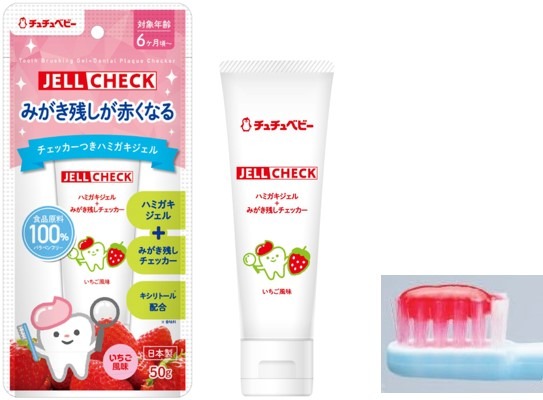 ジェクス株式会社(本社:大阪市中央区谷町、代表取締役社長:梶川 裕次郎)は、“家族みんなでハッピーな育児”がコンセプトの育児ブランド「チュチュ」より、みがき残しを赤く染め、仕上げみがきをサポートするハミガキジェル「ジェルチェック」のパッケージデザインをリニューアルし、 9月2日(月)から発売いたします。