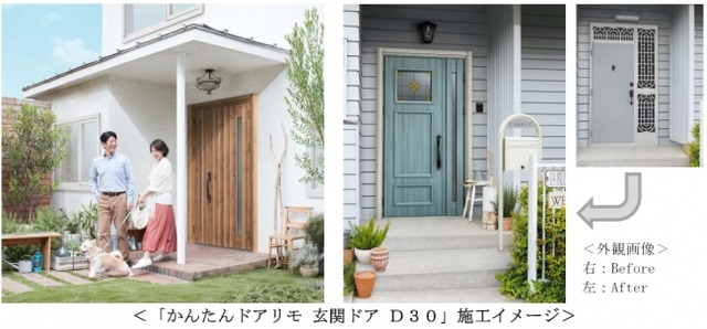 YKK APは、壁を壊さない“かんたん”な施工により、たった1日で玄関ドアを最新のデザイン・カラー・機能へ取り替える玄関ドアリフォーム商品を全面リニューアルし、「かんたんドアリモ 玄関ドア D30」として9月2日から発売します。