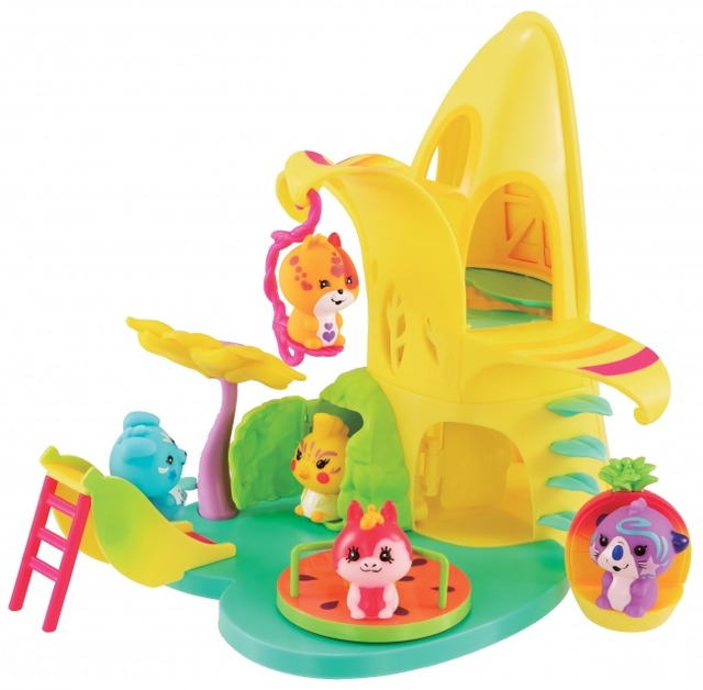 本商品は、「バナナーズ!」シリーズのマスコットを遊ばせることができるプレイハウスで、回転する遊具や外に出られるヒミツの扉、取り外せるすべり台など、細部までわくわくする仕掛けが盛り沢山です。