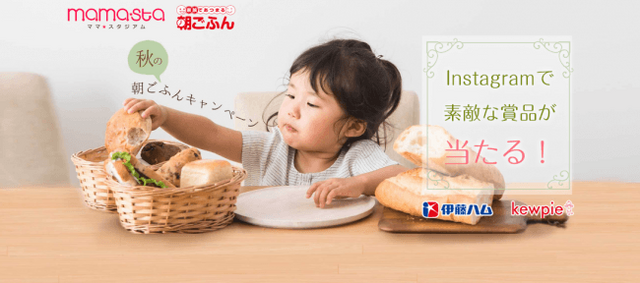2019年9月17日からは、『秋の朝ごふんキャンペーン』(http://mamastar.jp/special/asagofun/campaign.do)と題して、お子さんがサンドイッチを作っている様子や、朝食にパンやサンドイッチを使ったメニューなどを撮影し、Instagramに投稿するキャンペーンを実施します。また、今回のキャンペーンでは、パンによく合うレシピを数多く紹介しています。