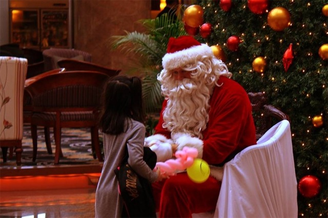 お客様のお部屋に事前にフロントで預けていただいた贈り物を持って、サンタクロースがご訪問。