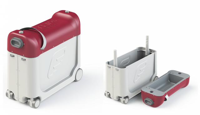 ジェットキッズ by ストッケ は、子ども用のスーツケースです。機内持ち込み可能で簡易ベッド機能のついた「ベッドボックス」、空港等での移動に便利な乗る機能に特化した「ライドボックス」、ライドボックスに簡易ベッド機能を追加するための「ライドボックス スリーピングキット」がラインアップ。