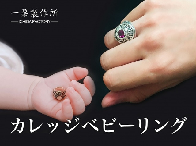 今回、一朶製作所で制作、販売するカレッジリングは、名前や日付を入れられるセミオーダーのカレッジリングです。しかも、赤ちゃん用のカレッジベビーリングもご用意ございます。