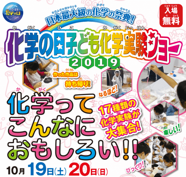 実験・実践を通して化学の面白さを伝えることが出来る「化学の日子ども化学実験ショー」へ、皆様のご参加をお待ちしております。