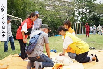 学長:木村哲、以下本学)は、 2019年9月29日(日)に品川区防災協議会八潮地区協議会主催で開催された、八潮地区総合防災訓練に初めて参加し、医療保健学部 看護学科(学科長:坂本すが)の学生が応急処置方法を住民に指導しました。