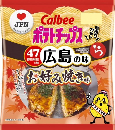 カルビー株式会社(本社:東京都千代田区、代表取締役社長兼CEO:伊藤 秀二)は、広島県の名物として親しまれている「お好み焼き」の味わいを再現した『ポテトチップス お好み焼き味』を数量限定・期間限定で2019年11月18日(月)から、広島・鳥取・島根・岡山・山口・徳島・香川・愛媛・高知(9県)で発売します。また、カルビーアンテナショップでも随時、販売予定です。商品は無くなり次第終了となります(12月下旬終売予定)。