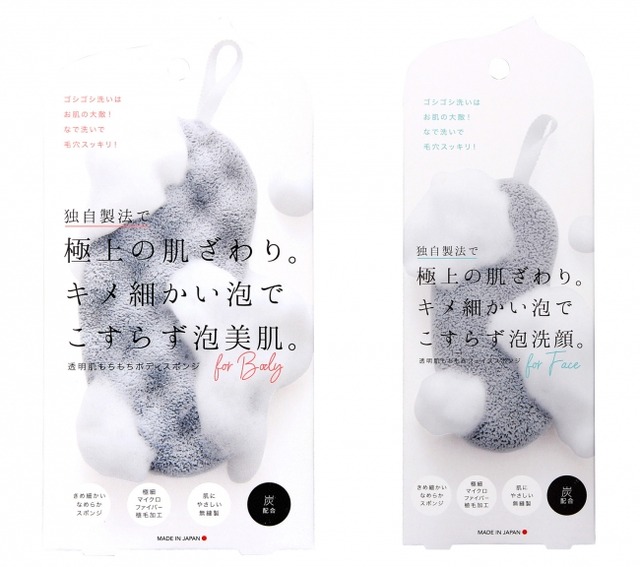極細マイクロファイバー植毛加工で極上の肌触りを味わえるスポンジ!ボディ用とフェイス用の2タイプございます。