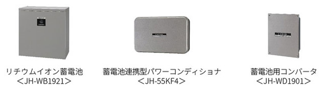 構成品:リチウムイオン蓄電池<JH-WB1921> / 蓄電池連携型パワーコンディショナ<JH-55KF4> / 蓄電池用コンバータ<JH-WD1901>