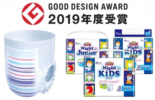 本年ブランド誕生40周年を迎えたエリエールブランドの大王製紙株式会社(住所:東京都千代田区)は、おねしょを気にする子供や母親の気持ちに寄り添う、おねしょ対策専用おむつ「グ~ン ナイトキッズパンツ」「グ~ン ナイトジュニアパンツ」を新商品で、「グ~ン ナイトキッズパッド」をリニューアルで2019年11月1日(金)より全国で発売します。また、「グ~ン ナイトシリーズ」は公益財団法人日本デザイン振興会主催の2019年度グッドデザイン賞を受賞しました。