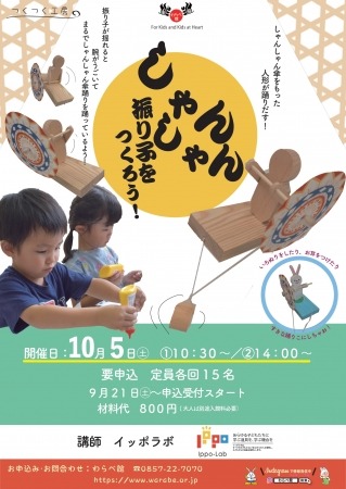 公益財団法人鳥取童謡・おもちゃ館(本社:鳥取県鳥取市、館長:国森洋、以下わらべ館)とイッポラボ合同会社(本社:鳥取県鳥取市、代表:田中 大一、以下イッポラボ)は、鳥取市の夏の風物詩「鳥取しゃんしゃん祭り」をモチーフにした子ども向け木工キットを開発し、2019年10月5日(土)にわらべ館で開催予定のイベントにて初披露することをご案内いたします。