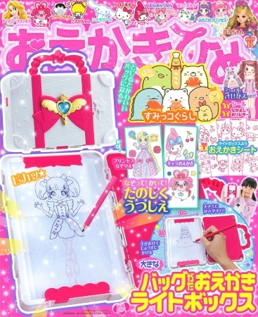 11月号は、かわいいイラストが上手にかける「バッグがた おえかきライトボックス」、ライトボックスと使うと、人気のキャラクターたちがかける「ライトボックスよう おえかきシート」、きせかえあそびが楽しめる「シール」、おるとかわいい、サンリオキャラクターの「なかよし(ハート)おりレター」など、豪華付録がもりだくさんです。