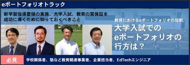 本トラックでは、小・中・高校教育のeポートフォリオ、新大学入試に向けたJAPAN e-Portfolio、大学教育のeポートフォリオのキーマンが一堂に会して、高大接続改革のための真のeポートフォリオについて明らかにすべく激論を交わします。