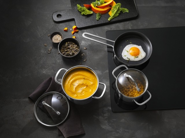 煮物やスープなど弱火での煮こみにも最適です。 付属のガラス蓋を使うと、蒸気を逃しにくい