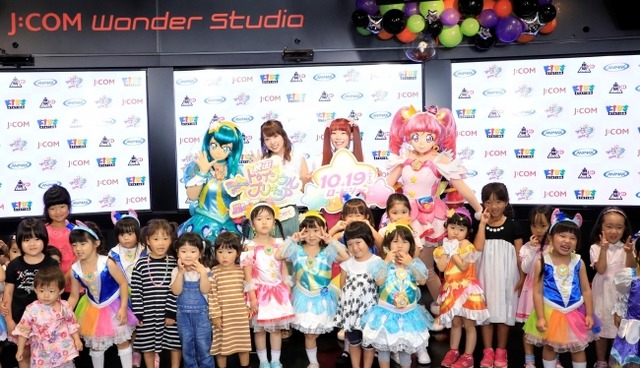 10月7日(月)に、『映画スター☆トゥインクルプリキュア 星のうたに想いをこめて』の劇場公開を記念して、「J:COM Wonder Studio」(東京ソラマチ(R)内)でプリキュアと子ども達が一緒に踊るダンスイベントを開催しました。平日にもかかわらず、会場にはプリキュア大ファンの子どもたち、約300名が大集合!スペシャルゲストとしてかけつけた、成瀬瑛美、小原好美と共に、キュアスター、キュアミルキーが登壇。公開まで2週間となった映画の見所や、本作にまつわる<うた>と<ダンス>について、お話をいただきました!