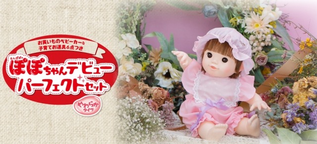 赤ちゃんそっくりな見た目と、ふわふわボディで思わず“ぎゅーっ”したくなるぽぽちゃんのクリスマスギフト決定版。お人形にママそっくりなお世話ができちゃうお道具がついて、単品購入より、2000円もお買い得な、ぽぽちゃんデビューするお子様にぴったりなセットです。
