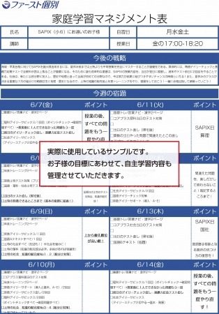 1.プロによる毎日の学習管理を行う「家庭学習マネジメント表」