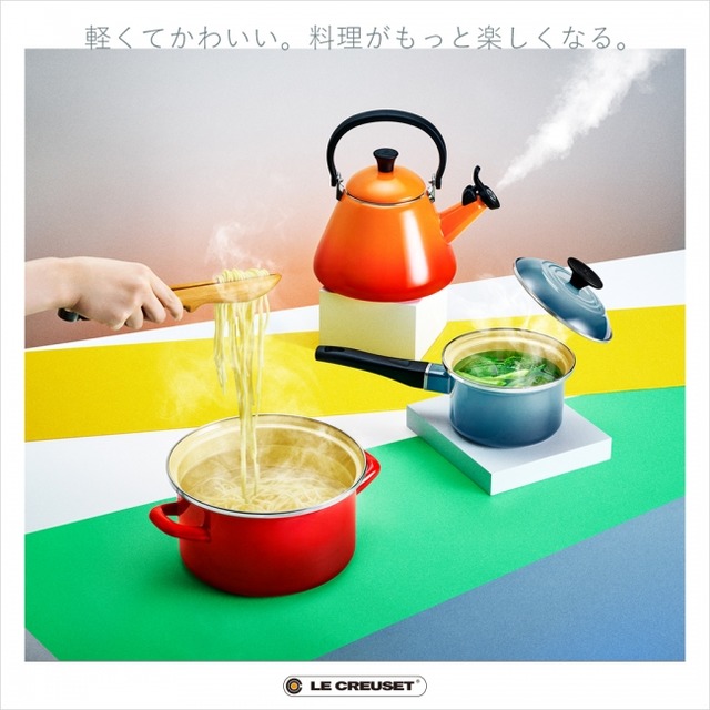 ル・クルーゼのホーロー鍋「EOS (Enamel on Steel)」がキッチンにあれば、料理はより早く、楽しく、快適に!鋳物ホーロー鍋に比べて短時間でお湯が沸き、軽くてさっと持ち運べる。ル・クルーゼカラーを楽しみながら、料理をスピーディーに作ることが出来ます。