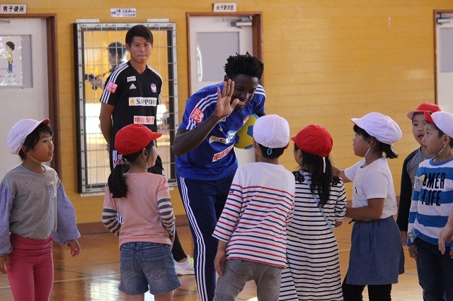 4回に分けて、全児童がフランシス選手を交えてミニゲームを行いました。ゴールが決まると、フランシス選手に駆け寄って喜び合う姿がたくさん見られました。プロサッカー選手と一緒にサッカーを楽しんだことは、児童の皆さんにとって大切な思い出になったことでしょう。