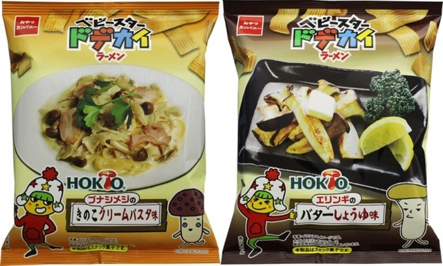 株式会社おやつカンパニー(本社所在地:三重県津市 代表取締役社長:手島文雄)は、きのこの生産・販売を行うホクト株式会社(本社所在地:長野県長野市 代表取締役社長:水野雅義)とのコラボレーション商品として「ベビースタードデカイラーメン(ブナシメジのきのこクリームパスタ味/エリンギのバターしょうゆ味)」を、2019年10月14日より、企画限定商品として全国にて発売します。