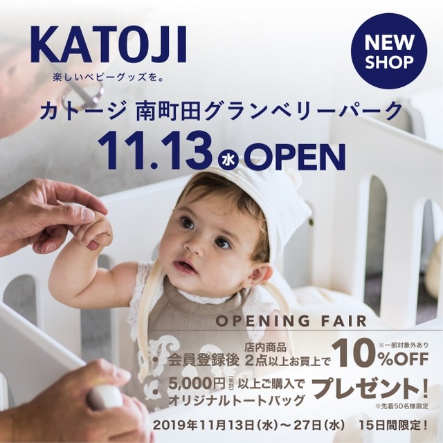 こだわり派のママパパのために、流行を意識したデザインや最新機能にこだわったベビー用品を取り扱う株式会社カトージ (本社・愛知県犬山市 代表取締役社長・加藤 浩一) は、【南町田グランベリーパーク】に11月13日(水)から、新店舗をオープンいたします。