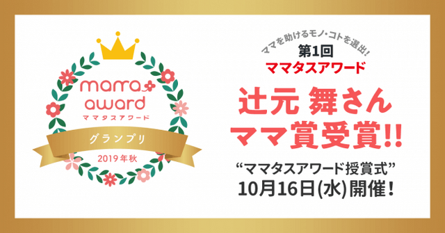 ママをたすける活動をした素敵なママ部門には「辻元舞」さんが受賞しました。授賞式にご登場頂きママとしての想いなどをお話していただく予定です。