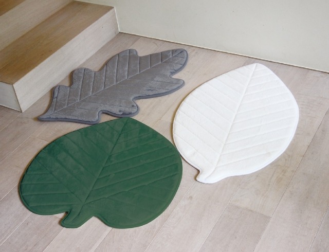 お家好きな人の家にはきっとある玄関マット。なぜって、そのお家の中に入る最初の場所だから、パッと目に入ってくる玄関マットで、そのお家のイメージと住んでいる人のセンスを簡単に印象つけることができることを知っている。玄関の雰囲気を変えたいと思う季節の変わり目に選んだのは、葉っぱの形をした「ソフトリーフマット」。
