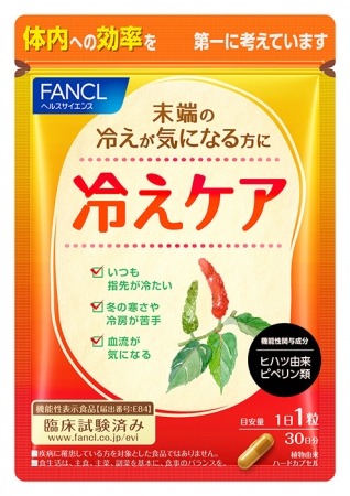 株式会社ファンケルは11月20日(水)から、「冷えケア」(価格:1,500円<税込>)を通信販売と直営店舗、一般流通※1で新しく発売します。同製品に配合した機能性関与成分「ヒハツ由来ピペリン類」が寒さによって低下した血流(末梢血流)を改善し、体温(末梢体温)を保ちます。冷えに関する機能を製品を用いた臨床試験で確認した、日本初※2の機能性表示食品です。冬期や冷房による末端の冷えが気になるお客様に販売してまいります。