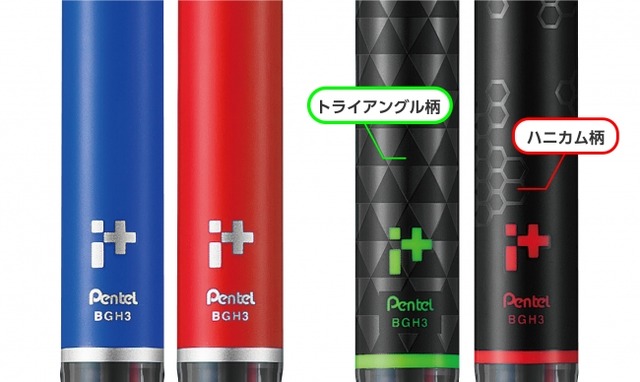 『アイプラス ブラックエディション』は、好評発売中のカスタマイズペン「アイプラス」のボディをベースに、男子中高生に定番で人気のマットカラーの2色と、スポーティーなカラーを細部に配したマットブラックの2色、全4色をカラーバリエーションとし、スピーディーで効率的なノートまとめのモチベーションにつながるデザインとしています。