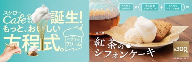 株式会社あきんどスシロー(本社:大阪府吹田市、代表取締役社長:堀江 陽)は本日、約1年の期間をかけて開発に成功した、『スシローカフェ部』を代表する本格クリーム「べつばらクリーム」を発表いたしました。そして、「べつばらクリーム」を使用した商品を、『スシローカフェ部』初となる“シリーズ商品”として展開し、こだわり抜いたクリームをたっぷりのせたシリーズ第1弾商品となる『紅茶のシフォンケーキ』300円(+税)を、10月17日(木)より全国のスシローにて期間限定で販売いたします。