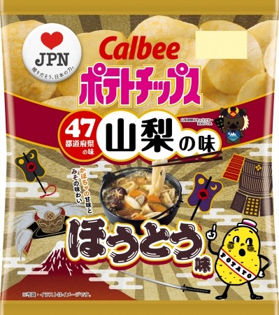 カルビー株式会社(本社:東京都千代田区、代表取締役社長兼CEO:伊藤 秀二)は、山梨県の郷土料理の味わいを再現した『ポテトチップス ほうとう味』を数量限定・期間限定で2019年11月18日(月)から、山梨・茨城・栃木・群馬・埼玉・千葉・東京・神奈川(8都県)で発売します。また、カルビーアンテナショップでも随時、販売予定です。商品は無くなり次第終了となります。※12月下旬終売予定