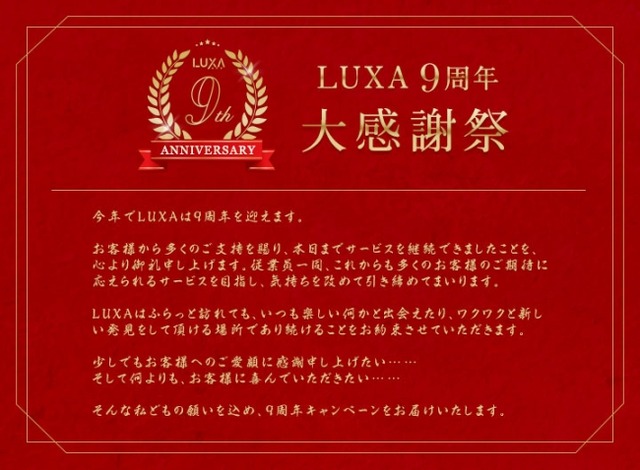 ・タイトル:LUXA 9周年 「大感謝祭」