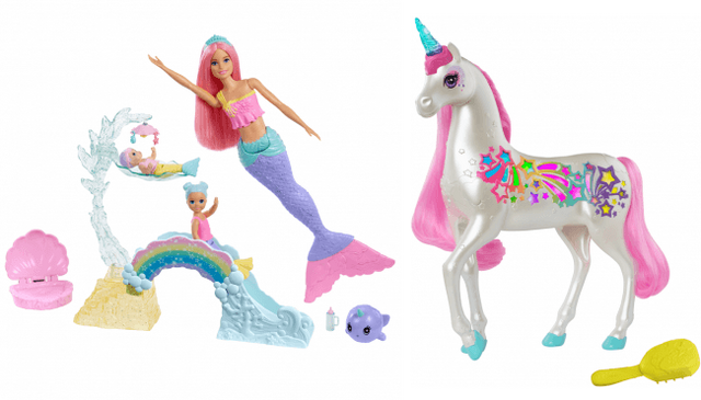 世界大手の玩具メーカー、米国マテル社の日本法人であるマテル・インターナショナル株式会社(本社:東京都 千代田区、代表取締役社長:工藤幹夫)は、今年デビュー60 周年を迎えた「バービー」から、アニメシリーズ「バー ビー ドリームトピア」に登場する、マーメイドに変身したバービーとお世話ごっこが楽しめる「バービー マーメイドのベビーシッターセット」と、ピンクのヘアをブラシでとかしたり、ボタンを押したりするとキラキラ光って、音楽が流れ る「バービーのキラキラユニコーン」を 10 月下旬より発売いたします。
