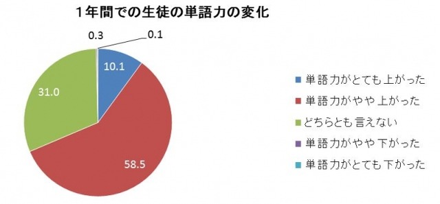 生徒の単語力が「とても上がった」とみなす先生は、知っている単語数が増えただけでなく、単語を“使える”状態になったことを、その理由として挙げている。