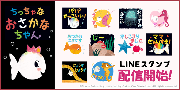 2018年より配信されているLINE着せかえに引き続き、ベストセラー絵本「ちっちゃなおさかなちゃん」がLINEスタンプとなって登場! おさかなちゃんの雰囲気に合わせ、カラフルでポップなデザイン、丁寧な言葉で使いやすいスタンプとなっております。親子やお母さん同士、もちろんお友だち同士で使用してもお楽しみいただけます。「ちっちゃなおさかなちゃん」スタンプでLINEのトークをおさかなちゃんとカラフルに彩ってみてはいかがでしょうか。