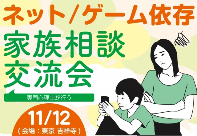 対象:インターネット依存・スマホ依存・ゲーム依存の問題を抱える方のご家族(家族会にはご本人は参加いただけません。)