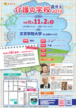 文京学院大学(学長:櫻井隆)は、本学ふじみ野キャンパスにて、11/11の「介護の日」に合わせたイベント「介護の学校 in 埼玉2019」を11月2日(土)に開催することをお知らせします。