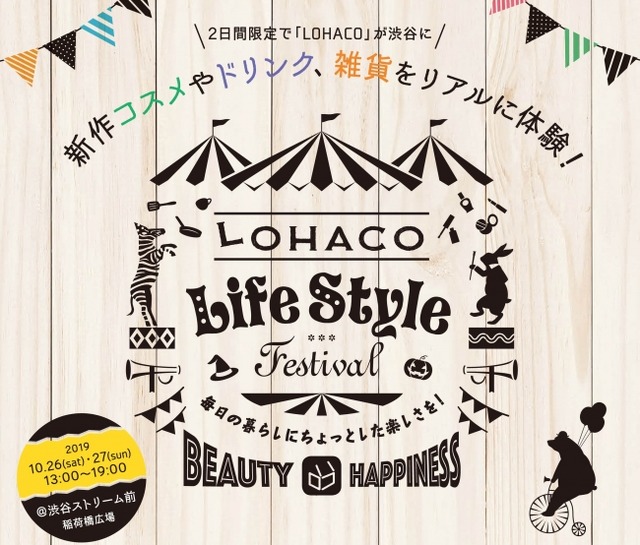 当日は、発売前の大人気コスメブランドの新製品をいち早く体験できるほか、暮らしになじむデザインを施したLOHACOならではの日用品、食品・飲料など、日々の暮らしを豊かにするために磨き込まれた、オリジナル限定アイテムを多数出展します。またパンやコーヒー、ジュースの試食・試飲、SNS投稿による賞品の抽選会など、ハロウィン前の週末で大賑わいの渋谷で楽しくお得なフェスティバルを繰り広げます。
