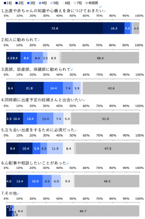 ▼産前講座に参加された方にお伺いします。産前講座に参加する主な理由は何でしたか。(順位をお選びください)※1位は必ずいずれかの項目をお選びいただき、2位以下はあてはまる項目がある方のみ、順位をお選びください。