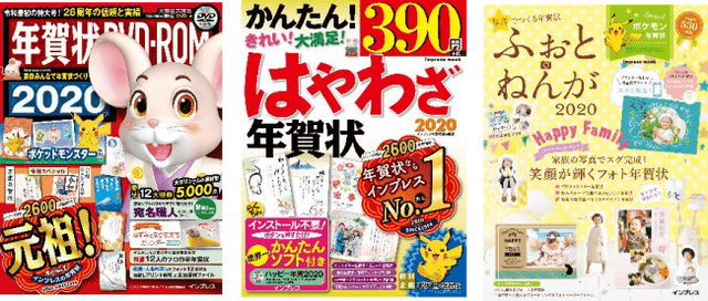 2020年の干支「ねずみ」に因み、『年賀状DVD-ROM 2020』『はやわざ年賀状2020』『写真でつくる年賀状 ふぉとねんが2020』の3冊に大人気TVアニメ「ポケットモンスター」の年賀状を収録しました。ピカチュウほか、ポケモンたちの可愛らしいイラストをあしらったデザインを収録しています。