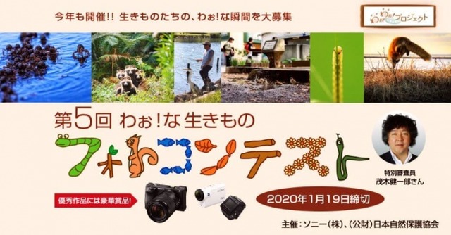 公益財団法人日本自然保護協会は、ソニー株式会社と協働する「わぉ!わぉ!生物多様性プロジェクト」において、11月1日(金)より、「第5回わぉ!な生きものフォトコンテスト」を開催します。身近な自然でみつけた感動の写真とエピソードを募集し、特別審査員の茂木健一郎氏(脳科学者)らによって、優秀作品を選出します。